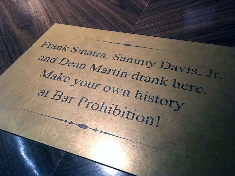 In downtown Las Vegas, amid the street performers and costumed superheroes taking selfies with visitors, Sinatra aficionados can have a drink at a bar reportedly frequented by the Rat Pack - the name given to Sinatra and his pals, Dean Martin and Sammy Davis, Jr. The Bar Prohibition inside the historic Golden Gate Hotel and Casino is surrounded by black and white photos of the trio. The venue even has a sign that says, "Frank Sinatra, Sammy Davis, Jr. and Dean Martin drank here. Make your own history at Bar Prohibition!"