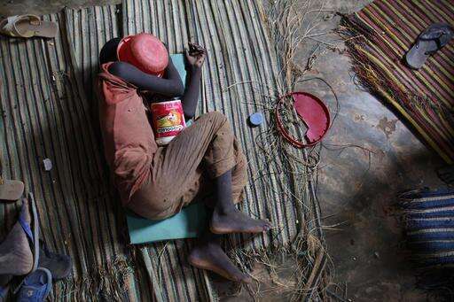FILE - In this Aug. 31, 2010 file photo, a Quranic student sleeps with his begging bowl covering his face in the unfinished first floor of a building which serves as both classroom and living space for the dozens of students at his Quranic school, in the Fadia neighborhood of Dakar, Senegal. More than 500 such children have been taken from Dakar's streets in the past two months. President Macky Sall announced the crackdown in June, 2016, and said the government will prosecute, fine and jail parents or Quranic teachers, known as marabouts, who are found guilty of abuses. (AP Photo/Rebecca Blackwell, File) The Associated Press