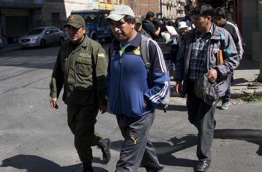 Police officer escort independent miners detained for questioning in the death of Bolivia's late Deputy Minister of Internal Affairs Rodolfo Illanes, in La Paz, Bolivia Friday, Aug. 26, 2016. Striking Bolivian miners kidnapped and beat to death Illanes Thursday, in a shocking spasm of violence following weeks of tension over dwindling paychecks in a region hit hard by falling metal prices. The miners were demanding they be allowed to work for private companies, who promise to put more cash in their pockets. (AP Photo/Juan Karita) The Associated Press