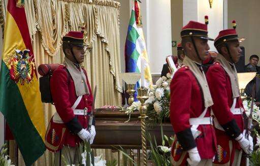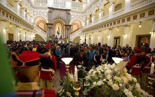 An honor guard stands vigil over Bolivia's Deputy Minister of Internal Affairs Rodolfo Illanes lying in state, inside the government palace in La Paz, Bolivia Friday, Aug. 26, 2016. Striking Bolivian miners kidnapped and beat to death Illanes Thursday, in a shocking spasm of violence following weeks of tension over dwindling paychecks in a region hit hard by falling metal prices. The miners were demanding they be allowed to work for private companies, who promise to put more cash in their pockets. (AP Photo/Juan Karita) The Associated Press