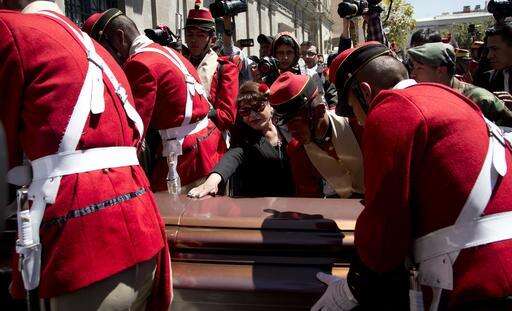 A woman reaches out to touch the coffin containing the remains of Bolivia's Deputy Minister of Internal Affairs Rodolfo Illanes, outside government palace in La Paz, Bolivia Friday, Aug. 26, 2016. Striking Bolivian miners kidnapped and beat to death Illanes Thursday, in a shocking spasm of violence following weeks of tension over dwindling paychecks in a region hit hard by falling metal prices. The miners were demanding they be allowed to work for private companies, who promise to put more cash in their pockets. (AP Photo/Juan Karita) The Associated Press