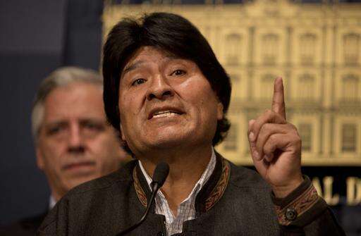 Bolivia's President Evo Morales speaks during a press conference at the government palace in La Paz, Bolivia Friday, Aug. 26, 2016. Striking miners in Bolivia armed with dynamite seized highways in a protest over mining laws and then kidnapped, possibly tortured and beat to death the county's deputy interior minister in a killing President Evo Morales characterized Friday as a "political conspiracy,". (AP Photo/Juan Karita) The Associated Press
