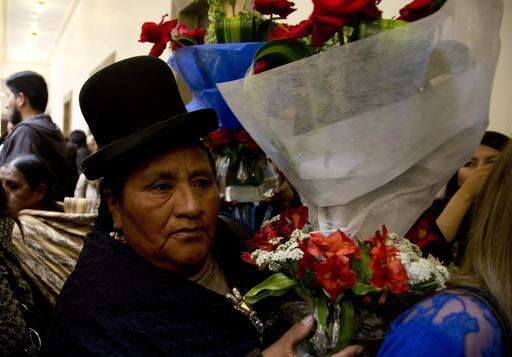 An Aymara woman arrives with a bouquet of flowers to leave for Bolivia's late Deputy Minister of Internal Affairs Rodolfo Illanes, at the government palace in La Paz, Bolivia Friday, Aug. 26, 2016. Striking Bolivian miners kidnapped and beat to death Illanes Thursday, in a shocking spasm of violence following weeks of tension over dwindling paychecks in a region hit hard by falling metal prices. The miners were demanding they be allowed to work for private companies, who promise to put more cash in their pockets. (AP Photo/Juan Karita) The Associated Press