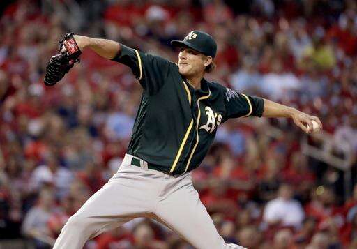 Athletics: RHP Zach Neal (2-3, 5.49 ERA) will make his first career appearance against St. Louis. He has walked two in 39 1/3 innings and his .046 walks per nine inning average is the lowest in the majors among pitchers with at least 25 innings.