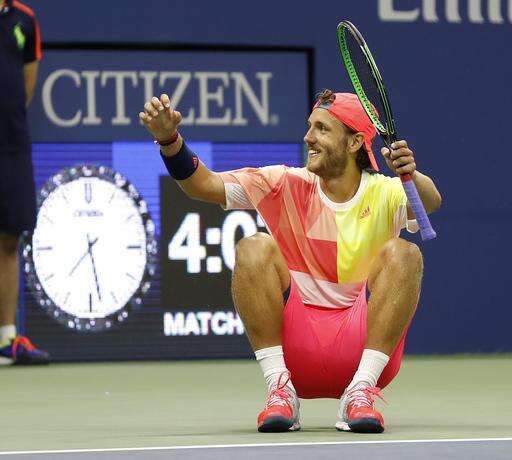 Lucas Pouille, of France, reacts after beating Rafael Nadal, of Spain, during the fourth round of the U.S. Open tennis tournament, Sunday, Sept. 4, 2016, in New York. (AP Photo/Andres Kudacki) The Associated Press
