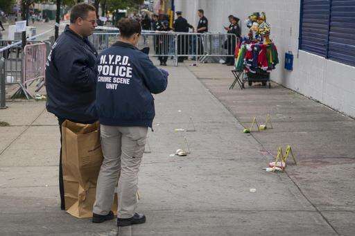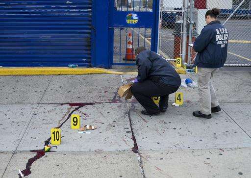 Crime scene investigators with the New York Police Department work at the scene where multiple people were killed and others injured in a shooting during J'ouvert festivities in the Brooklyn borough of New York on Monday, Sept. 5, 2016. (AP Photo/Craig Ruttle) The Associated Press