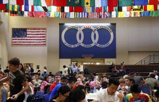 Stevenson District 125, in contrast, educates students in an area northwest of Chicago that's home to upper-class professionals and corporate headquarters, the kind of districts parents move into in hopes of giving their children a leg up. Adlai Stevenson High School resembles a small college, with a manicured campus and more than 120 student clubs. Wide, carpeted hallways house art galleries for displaying student work. Outside a suite of teacher offices, a message on a flat-screen TV congratulates the water polo team on its state championship.
