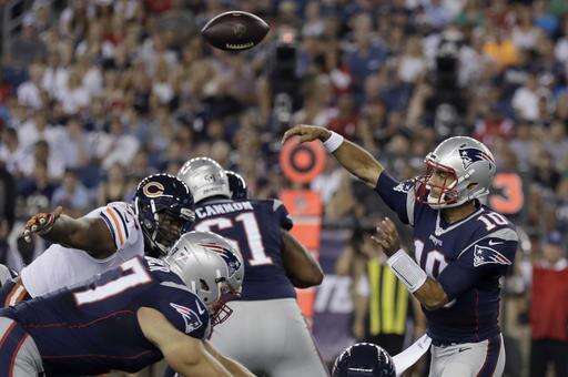 FILE - In this Aug. 18, 2016, file photo, New England Patriots quarterback Jimmy Garoppolo (10) passes against the Chicago Bears during the first half of a preseason NFL football game, in Foxborough, Mass. It's been eight years since Tom Brady was not in the starting lineup as the Patriots' starting quarterback. It will be reality again as New England puts the offense in the hands of Jimmy Garoppolo while Brady is forced to sit for the first four games of 2016 serving his "Deflategate" suspension. (AP Photo/Charles Krupa, File) The Associated Press