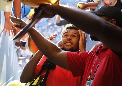 Jo-Wilfried Tsonga, of France, runs a gauntlet of autograph seekers after winning his match with Jack Sock, of the United States, during the fourth round of the U.S. Open tennis tournament, Sunday, Sept. 4, 2016, in New York. (AP Photo/Kathy Willens) The Associated Press