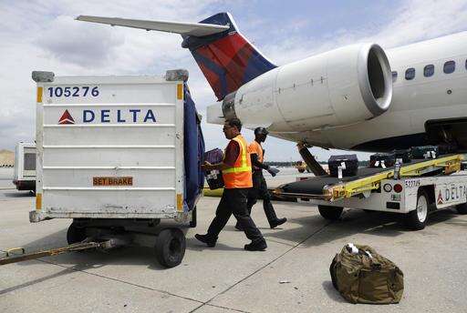 FILE - In this July 12, 2016, file photo, workers unload baggage from a Delta Air Lines flight at Baltimore-Washington International Thurgood Marshall Airport in Linthicum, Md. Delta Air Lines and Korean Air are taking steps to mend a chilly relationship, announcing an expansion of their partnership Wednesday, Sept. 7, 2016, where each airline can sell tickets on some of each other’s flights. Delta will also launch a new nonstop flight from its hometown of Atlanta to Seoul Incheon International Airport in June. (AP Photo/Patrick Semansky, File) The Associated Press