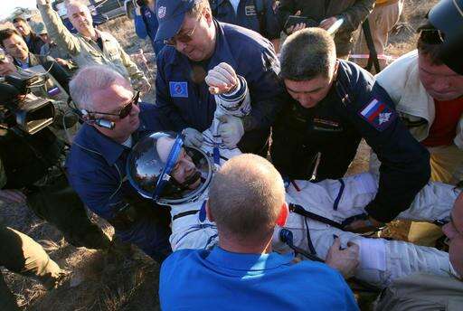 NASA's Jeff Williams returned as the U.S. record holder for time in orbit, logging 534 days in space over four missions. Williams, Alexey Ovchinin and Oleg Skripochka logged 72.8 million miles in space, circling the globe 2,752 times before landing on target in the south central steppes of Kazakhstan just 23 minutes after sunrise Wednesday, 7:13 a.m. local time (1:13 a.m. GMT).