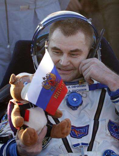 Stretched out in chairs placed in the brown wild grass, the three flyers were all smiles, giving thumbs up, chatting on cell phones. They were promptly pulled out of the Russian Soyuz capsule, which landed on its side, which is not unusual. Williams wore a black baseball cap while seated outside and talking on the phone. Ovchinin clutched a stuffed doll his daughter gave him as a mascot that went into space with him.