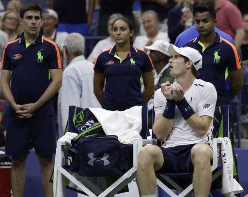 Murray led two sets to one - 6-1, 4-6, 6-4 - and held break points at 1-all in the fourth Wednesday. But during that second break chance, the point was interrupted by a noise something akin to a gong being struck. Chair umpire Marija Cicak immediately halted play. Murray complained about that right away, then again at the ensuing changeover, when he also spoke to a tournament supervisor.