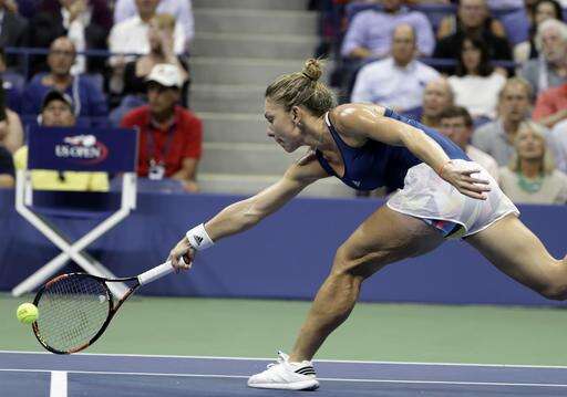 In the women's quarterfinals, Serena Williams was broken for the first time in the tournament, and lost a set for the first time, too, but eventually got past No. 5 Simona Halep 6-2, 4-6, 6-3. A year ago in the U.S. Open semifinals, Williams' bid for a calendar-year Grand Slam ended with a loss to unseeded Roberta Vinci of Italy.