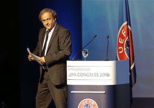 Platini was allowed by FIFA's ethics judge to deliver the UEFA congress address as a "gesture of humanity," despite serving a four-year suspension from any role in soccer over an improper payment.