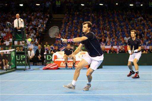 GLASGOW, Scotland (AP) - Andy and Jamie Murray kept Britain alive in its Davis Cup semifinal against Argentina, winning the doubles match in four sets to reduce the titleholder's deficit to 2-1 on Saturday.