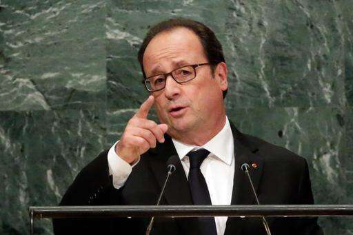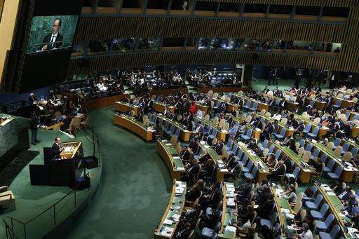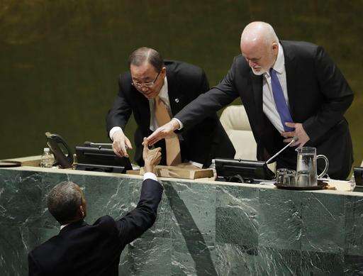 UNITED NATIONS (AP) - U.N. Secretary-General Ban Ki-moon railed Tuesday against leaders who keep "feeding the war machine" in Syria as he bowed out of the world stage, while President Barack Obama said there was no military solution to the five-year conflict and described a globe in the throes of a contest between authoritarianism and democracy.