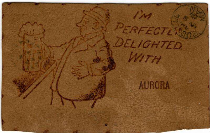 A leather postcard from Aurora indicates what a big role saloons played in the city's life in the early 1900s. Courtesy of the Aurora Historical Society