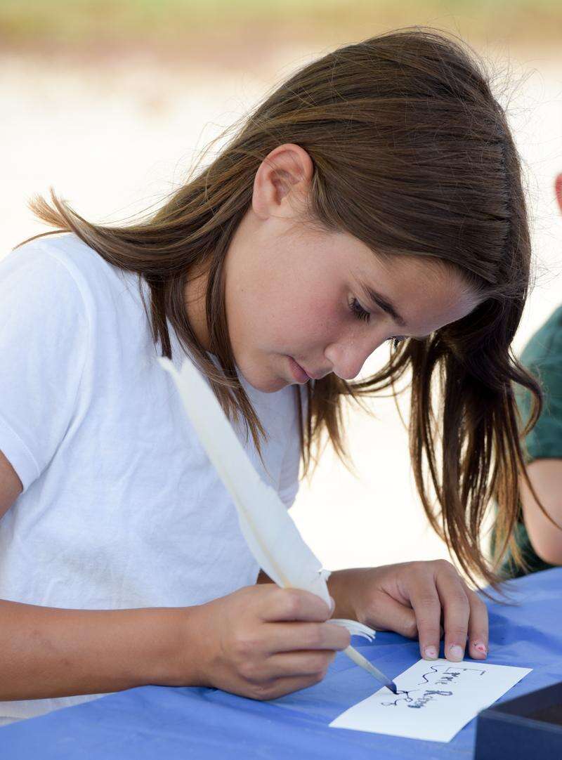 Emmie Roberts, 12, of Glen Ellyn writes her name with a quill pen as part of the many activities Sunday at the Glen Ellyn Historical Society's annual Tavern Day. Mark Black/mblack@dailyherald.com