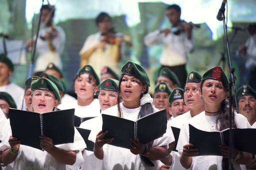 A chorus of rebels of the Revolutionary Armed Forces of Colombia, FARC, sings in the Yari Plains, Colombia, Monday, Sept. 26, 2016. President Juan Manuel Santos and FARC leader Rodrigo Londono, alias Timochenko, signed a peace accord to end more than five decades of conflict in the Caribbean city of Cartagena. (AP Photo/Ricardo Mazalan) The Associated Press