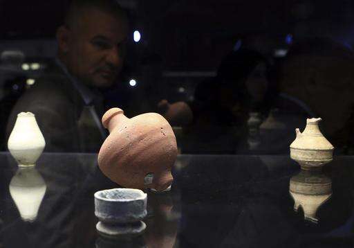 Antiquities are displayed at a newly opened museum in the southern city of Basra, Iraq, Tuesday, Sept. 27, 2016. Iraq inaugurated the new antiquities museum in Basra on Tuesday, with pottery, statues, coins and other artifacts dating back more than 2,000 years. Only one hall was opened due to a shortage of funds. The museum is housed in one of Saddam Hussein’s former palaces, which had briefly served as a mess hall for British troops after the 2003 U.S.-led invasion that overthrew him. It will showcase artifacts dating back to 400 B.C. that tell the history of the oil-rich city on the Persian Gulf. (AP Photo/Nabil al-Jurani) The Associated Press