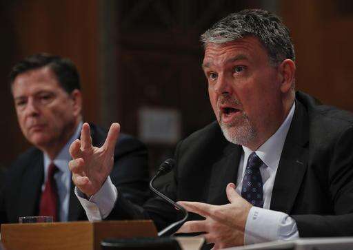 Director of National Counterterrorism Center, Office of the National Intelligence, Nicholas Rasmussen, right, accompanied by FBI Director James Comey testifies on Capitol Hill in Washington, Tuesday, Sept. 27, 2016, before the Senate Homeland Security and Governmental Affairs Committee hearing on on terror threats. (AP Photo/Pablo Martinez Monsivais) The Associated Press
