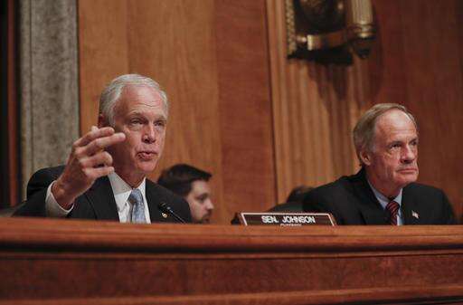 Senate Homeland Security and Governmental Affairs Committee Chairman Sen. Ron Johnson, R-Wis., left, accompanied by the committee's ranking member Sen. Tom Carper, D-Del., speaks on Capitol Hill in Washington, Tuesday, Sept. 27, 2016, during the committee's hearing on on terror threats. (AP Photo/Pablo Martinez Monsivais) The Associated Press
