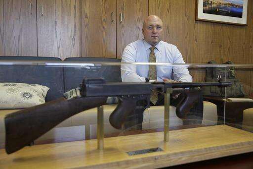 In this photo taken Tuesday, Sept. 27, 2016, FBI Special Agent Jack Bennett poses behind an encased Thompson Submachine gun in his office in San Francisco. The FBI’s new leader in San Francisco is a former drug investigator who developed expertise in technology that put him at the center of the government’s effort to unlock an iPhone used by one of the San Bernardino shooters. Bennett now has oversight responsibilities for Silicon Valley. (AP Photo/Eric Risberg) The Associated Press
