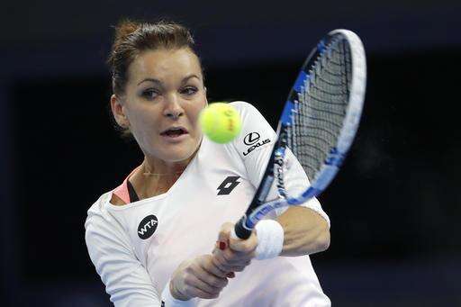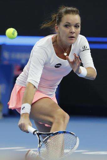 Agnieszka Radwanska of Poland hits a return shot against Elina Svitolina of Ukraine during the women's singles semifinals of the China Open tennis tournament at the Diamond Court in Beijing, Saturday, Oct. 8, 2016. (AP Photo/Andy Wong)