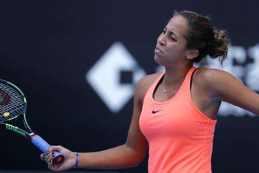 Madison Keys of the United States reacts after losing a point to Johanna Konta of Britain during the women's singles semifinals of the China Open tennis tournament at the Diamond Court in Beijing, Saturday, Oct. 8, 2016. (AP Photo/Andy Wong)