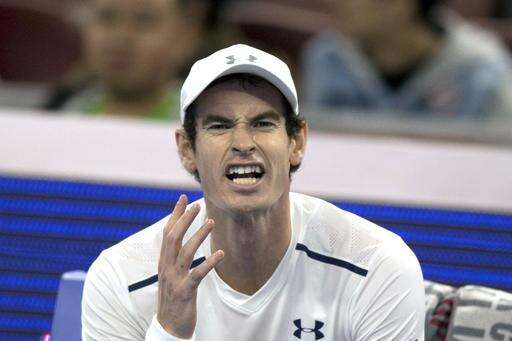 Andy Murray of Britain reacts during play against David Ferrer of Spain in a men's semifinal singles match of the China Open tennis tournament in Beijing, China, Saturday, Oct. 8, 2016. (AP Photo/Ng Han Guan)