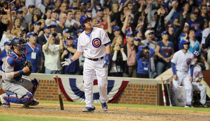 during Game 1of baseball's National League championship series against the Los Angeles Dodgers, Oct, 15 2016, at Wrigley Field in Chicago.