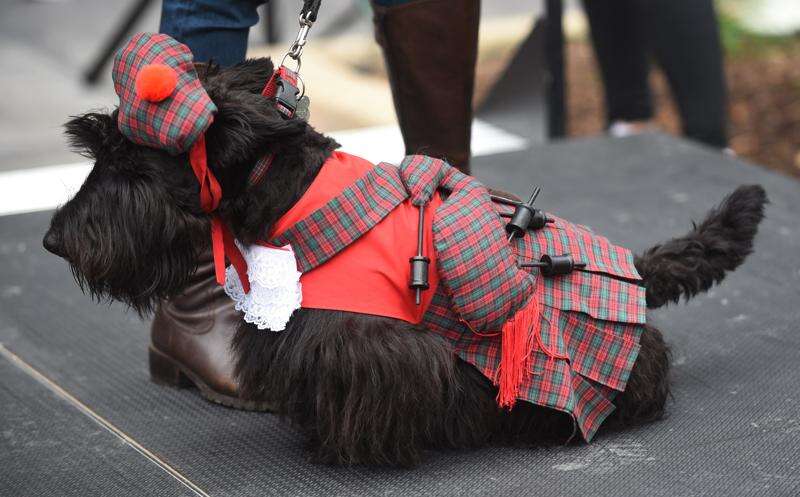 "Balvenie," a Scottish terrier owned by Karen Hull of Chicago, is appropriately dressed during the pet parade of the fifth annual Hoots and H'Owls at Randhurst Village in Mount Prospect Saturday.