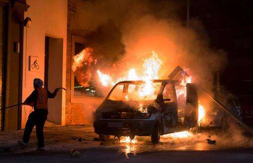 JOHANNESBURG (AP) - South African police arrested nine people during arson attacks and stone-throwing near a Johannesburg university where students have been protesting for free education, authorities said Saturday, and the government called for "violent campus protest to stop immediately."