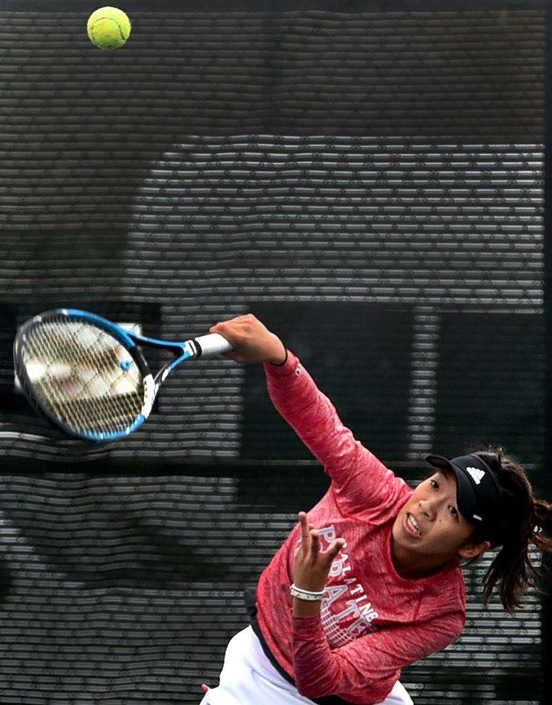 Kawai breezed against her first two opponents, on her home courts at Palatine. She started with a 6-1, 6-0 victory over Wheaton Warrenville South's Emily Orlove and followed that with a 6-0, 6-1 triumph against Lane's Hallie Leblebijian.