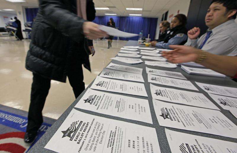 In suburban Chicago the first day of early voting nearly doubled the previous record. Cook County Clerk David Orr's office said there were about 25,600 early voters on Monday. That's compared to the previous record for the first day of early voting when about 13,800 people early voted in 2008.