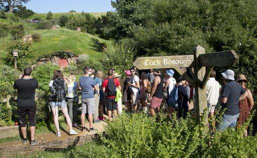 In this Thursday, Dec. 31, 2015 photo, tourists tour the Hobbit movie set near Matamata, New Zealand. In New Zealand there are twice as many cows as people, but it's the hobbits that are really making hay. According to figures released Wednesday, Oct. 26, 2016, tourism has overtaken dairy as the nation's top earner of overseas dollars. And tourism officials say the success of the fantasy movie trilogy "The Hobbit" has helped.(AP Photo/Mark Baker) The Associated Press
