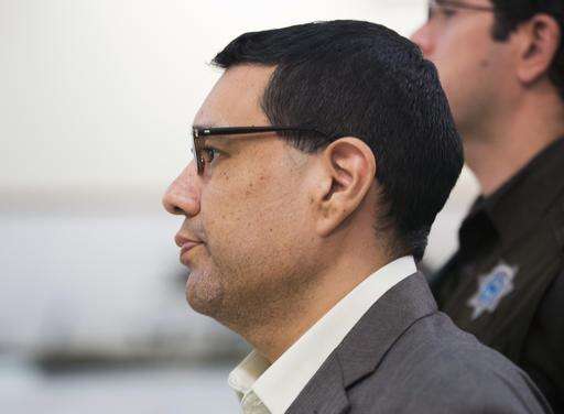 In this Sept. 27, 2016 photo, Anthony Garcia is led by deputies at the Douglas County Court in Omaha, Neb. Closing arguments are taking place Tuesday, Oct. 25, 2016, in his trial. Garcia, a former doctor, is accused of killing four people with ties to the Creighton medical school that fired him in 2001. (AP Photo/Nati Harnik)