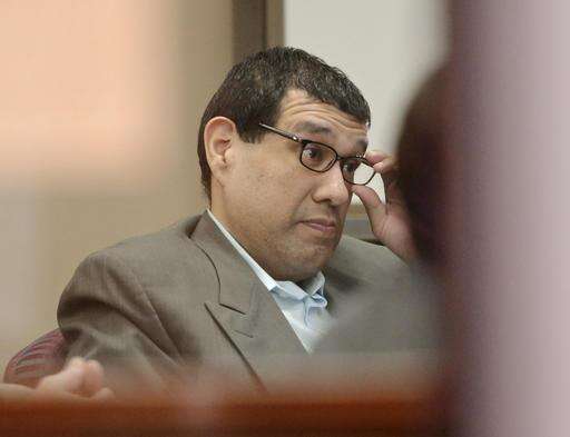 In this Oct. 25, 2016 photo, Anthony Garcia adjusts his glasses during closing arguments in his trial at the Douglas County Court in Omaha, Neb. On Wednesday, Oct. 26, 2016, the Douglas County jury found Anthony Garcia, a former doctor, guilty of four counts of first-degree murder for killing four people with ties to the Creighton medical school that fired him in 2001. Garcia now faces either life in prison or death, if voters opt on Nov. 8 to keep Nebraska's death penalty. (AP Photo/Nati Harnik)