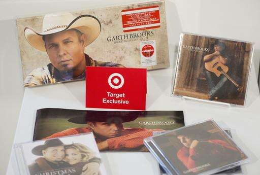 Garth Brooks CDs are displayed at a Target media preview, Tuesday, Oct. 25, 2016, in New York. The 10-disc box set from the country pop singer includes the artist's new album and features the 25th anniversary edition of "Friends in Low Places." (AP Photo/Mark Lennihan) The Associated Press