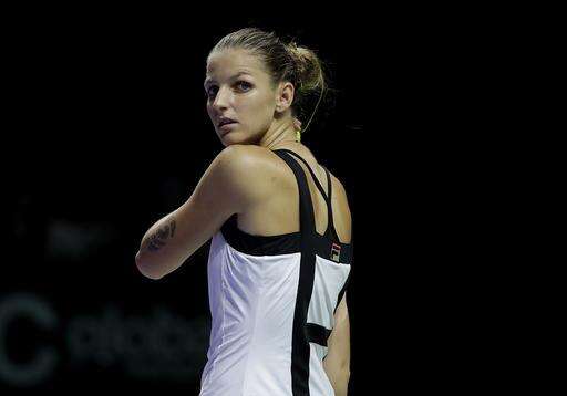 Karolina Pliskova of the Czech Republic looks at the audience during her singles match against Agnieszka Radwanska of Poland at the WTA tennis tournament in Singapore, Friday, Oct. 28, 2016. (AP Photo/Wong Maye-E) The Associated Press