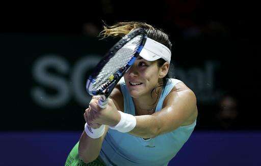 Garbine Muguruza of Spain watches her backhand return against Svetlana Kuznetsova of Russia during their singles match at the WTA tennis tournament in Singapore, Friday, Oct. 28, 2016. (AP Photo/Wong Maye-E) The Associated Press