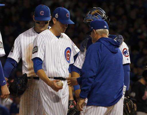 CHICAGO (AP) - Managers head to the mound and point to the bullpens so often in the postseason, it wouldn't be surprising if they need Tommy John surgery.