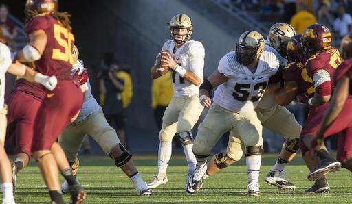 Purdue quarterback David Blough (11) looks to pass against Minnesota during the first half of an NCAA college football game, Saturday, Nov. 5, 2016, in Minneapolis. (AP Photo/Paul Battaglia) The Associated Press