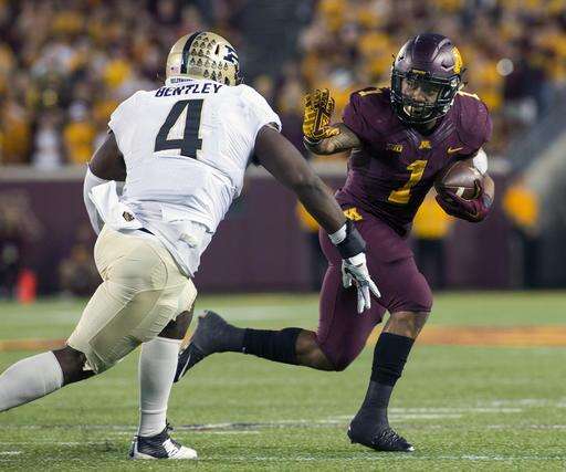 Minnesota's Rodney Smith (1) runs for 28 yards against Purdue during the first half of an NCAA college football game, Saturday, Nov. 5, 2016, in Minneapolis. (AP Photo/Paul Battaglia) The Associated Press