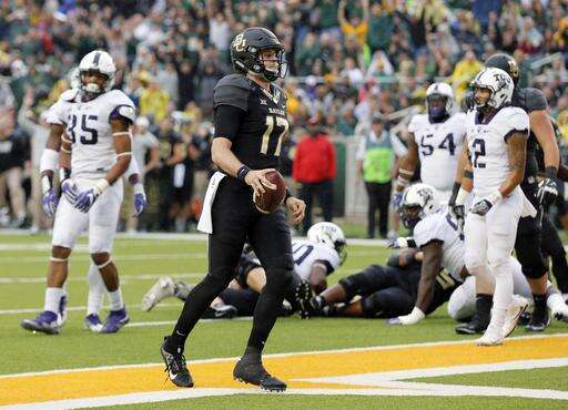 Baylor quarterback Seth Russell walks into the end zone untouched for a touchdown against TCU in the first half of an NCAA college football game, Saturday, Nov. 5, 2016, in Waco, Texas. (AP Photo/Tony Gutierrez)