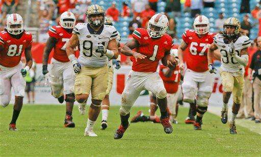 MIAMI GARDENS, Fla. (AP) - Brad Kaaya picked on Pittsburgh's secondary with his arm, and even caused problems with his legs.