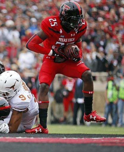 Texas Tech's Douglas Coleman (25) strips the ball from a Texas running back during an NCAA college football game Saturday, Nov. 5, 2016, in Lubbock, Texas. (Brad Tollefson/Lubbock Avalanche-Journal via AP)