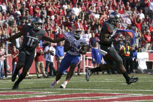 The win is the first Southeastern Conference victory over the Gators for the Razorbacks (6-3, 2-3 SEC), who had lost nine straight to Florida since joining the league in 1992.