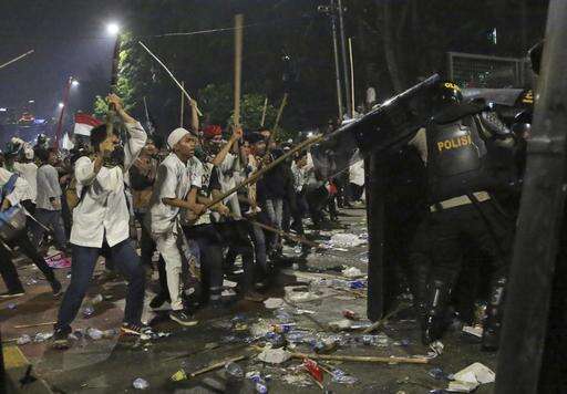 National police spokesman Boy Rafli Amar told a news conference Saturday that one elderly man died from asthma attack after being exposed to tear gas, and more than 90 police and soldiers were injured, eight of them seriously. He said that about 160 protesters were hurt from tear gas effects, including four who were hospitalized.